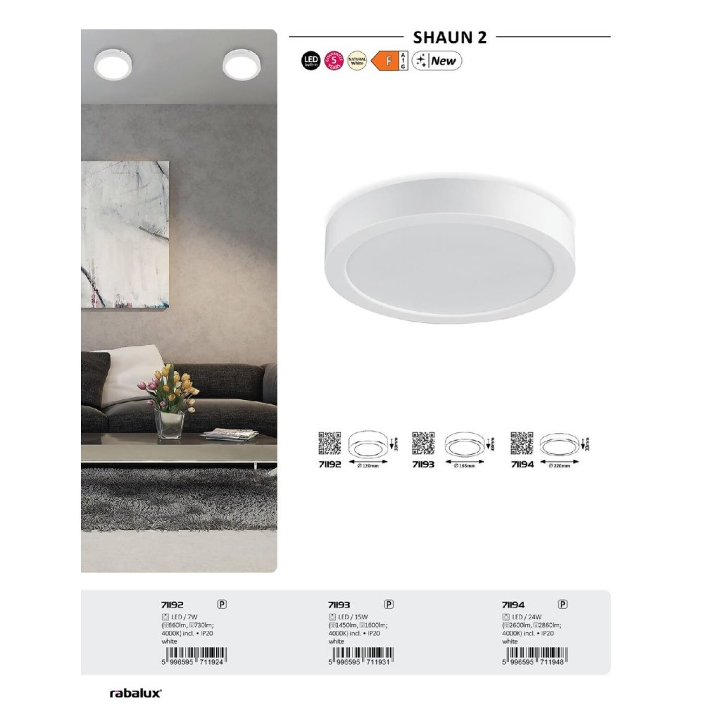LED Stropní přisazené svítidlo Rabalux SHAUN2 71193 15W 1450lm 4000K IP20 16,5cm bílé, nestmívatelné