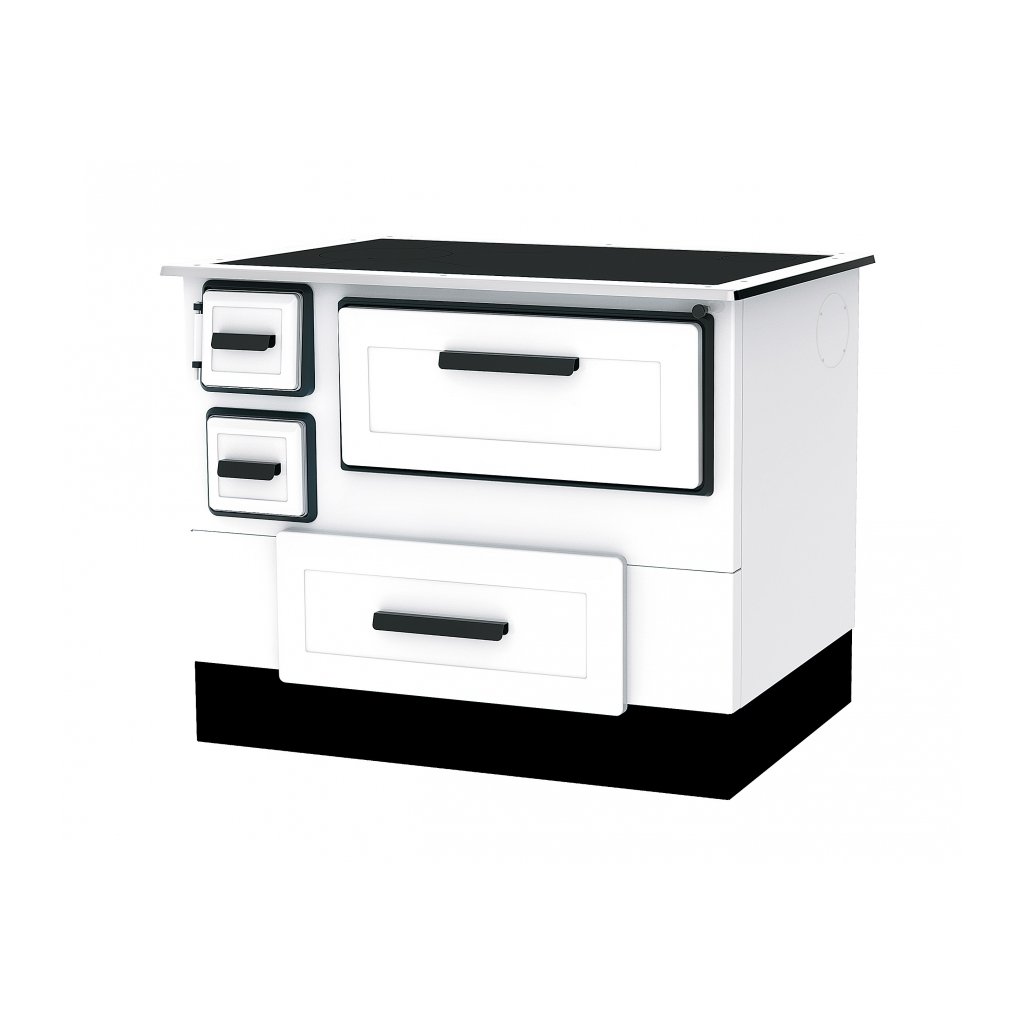 Velká trouba 58l, ve spodní části je umístěný šuplík na dostatečnou zásobu paliva, plášť je z kvalitního smaltovaného plechu s odolností až do 800°C.