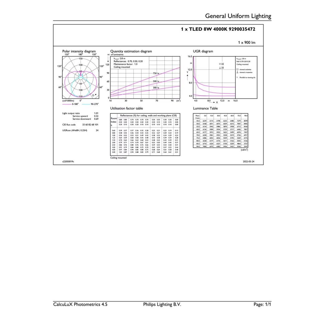 LED lineární trubice Philips CorePro LEDtube v délce 60 cm s paticí G13 je úspornou náhradou tradičních zářivek T8. Celkový příkon integrovaných výkonných LED diod je 8 W a vydává jasné neutrální denní bílé světlo 4000 K se silným světelným tokem 800 lm.