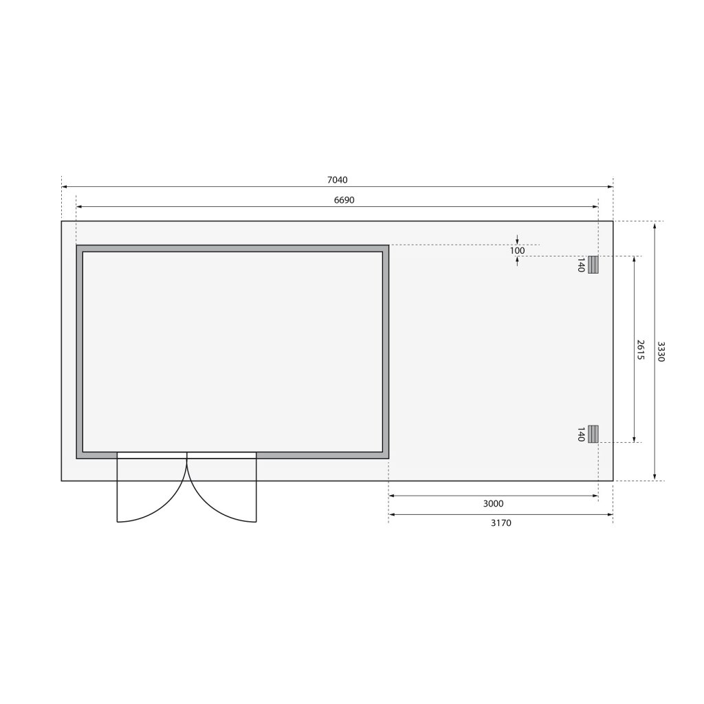 Tato verze domku obsahuje i přístavek včetně zadní stěny délky 300 cm.