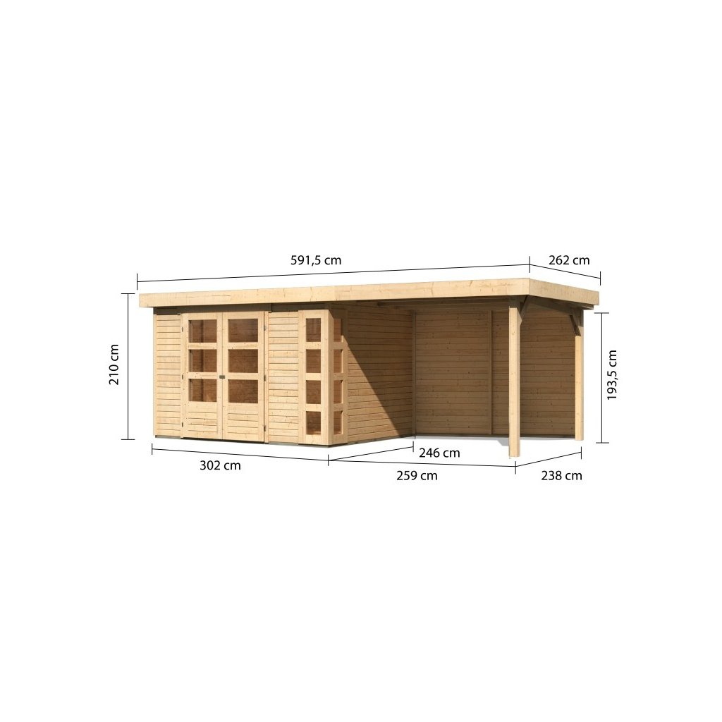 Dřevěný domek KARIBU KERKO 5 + přístavek 280 cm včetně zadní stěny (9206) natur LG2991