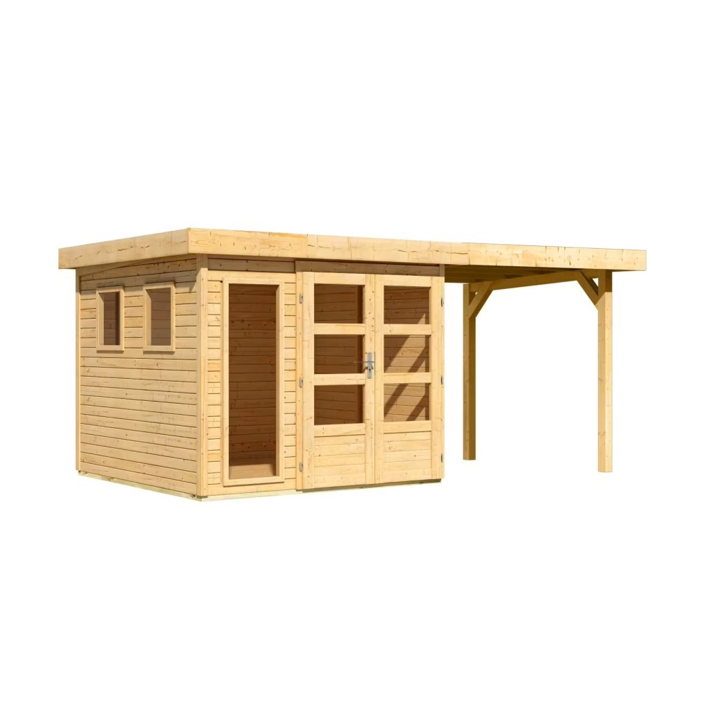 Dřevěný domek KARIBU LAHAR 3,5 + přístavek 240 cm (12132) natur LG4421