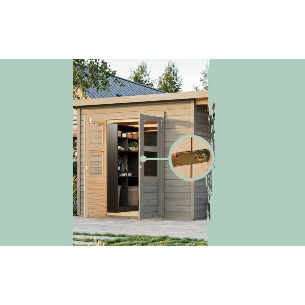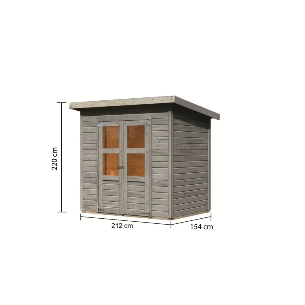 Základní model dřevěného domku pro vaši zahradu. Tento model má pultovou střechu a dvoukřídlé dveře na pantech s oknem v každém křídle. Stavebním materiálem domku jsou dřevěné profily síly 14 mm perfektně vyfrézované ze severského smrku. Dodáváme jako stavebnici v rozloženém stavu, kde stěny tvoří jednotlivé dřevěné profily, které pouze sesadíte k sobě a sešroubujete, střechu tvoří celistvá deska. To garantuje extrémně jednoduchou montáž, kterou zvládne každý český kutil.