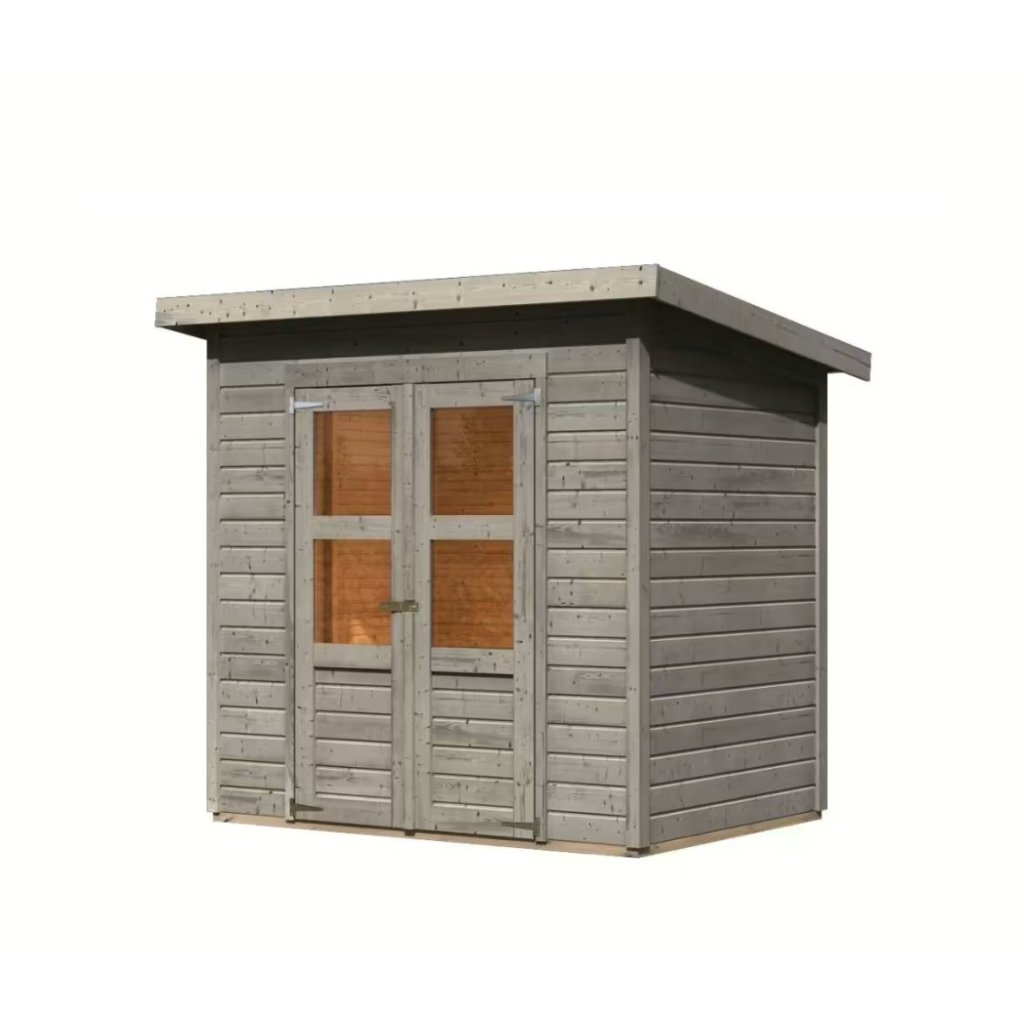 Tento model domku dodáváme v profesionálním nátěru KARIBU (odstín světle šedé RAL 360 60 05):