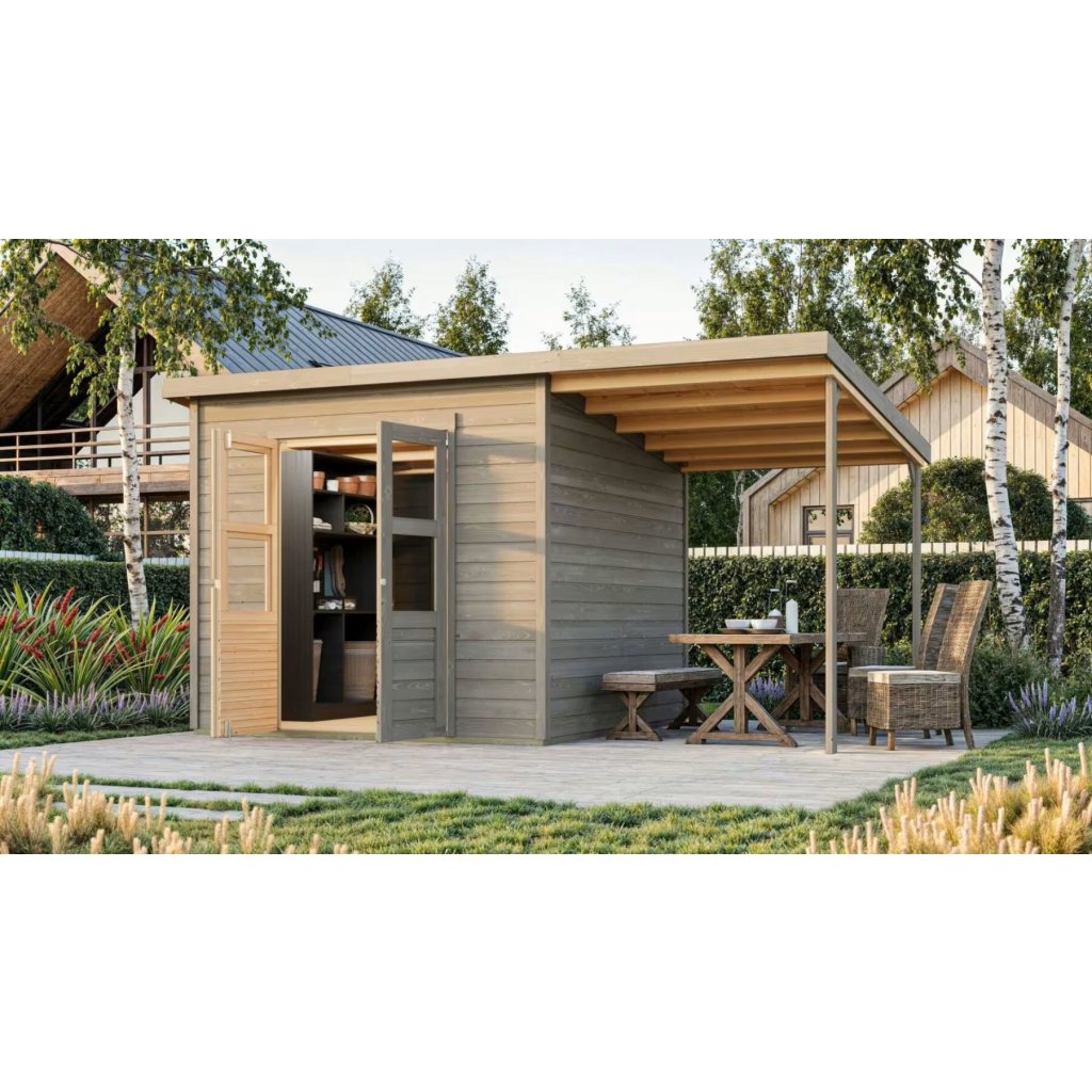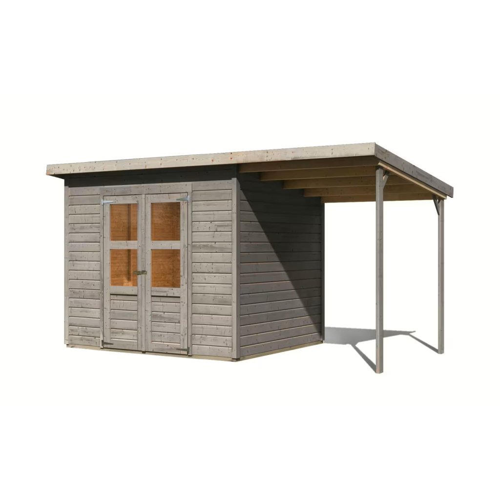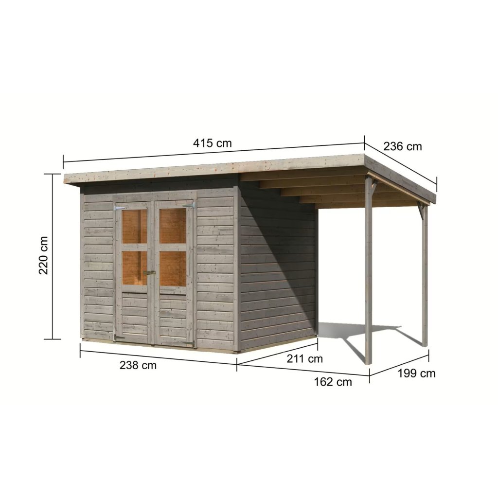 Dřevěný domek KARIBU MERSEBURG 5 + přístavek 166 cm (9603) světle šedý LG4439