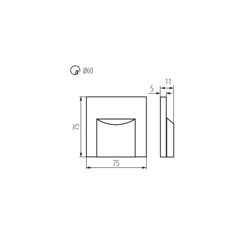 LED Schodišťové svítidlo Kanlux ERINUS LED L B-NW 33333 0,8W 15lm 4000K IP20 7,5cm hranaté, černé