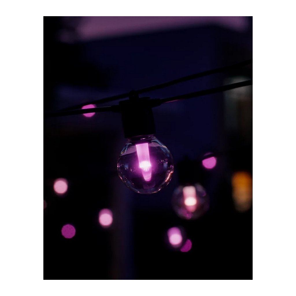 Chytrý venkovní světelný řetěz Philips Hue Festavia Globe v nejdelší délce 21 m s 30 nerozbitnými smart Hue White and Color Ambiance LED žárovkami pro okouzlující nasvícení vaší zahrady, terasy nebo balkónu.