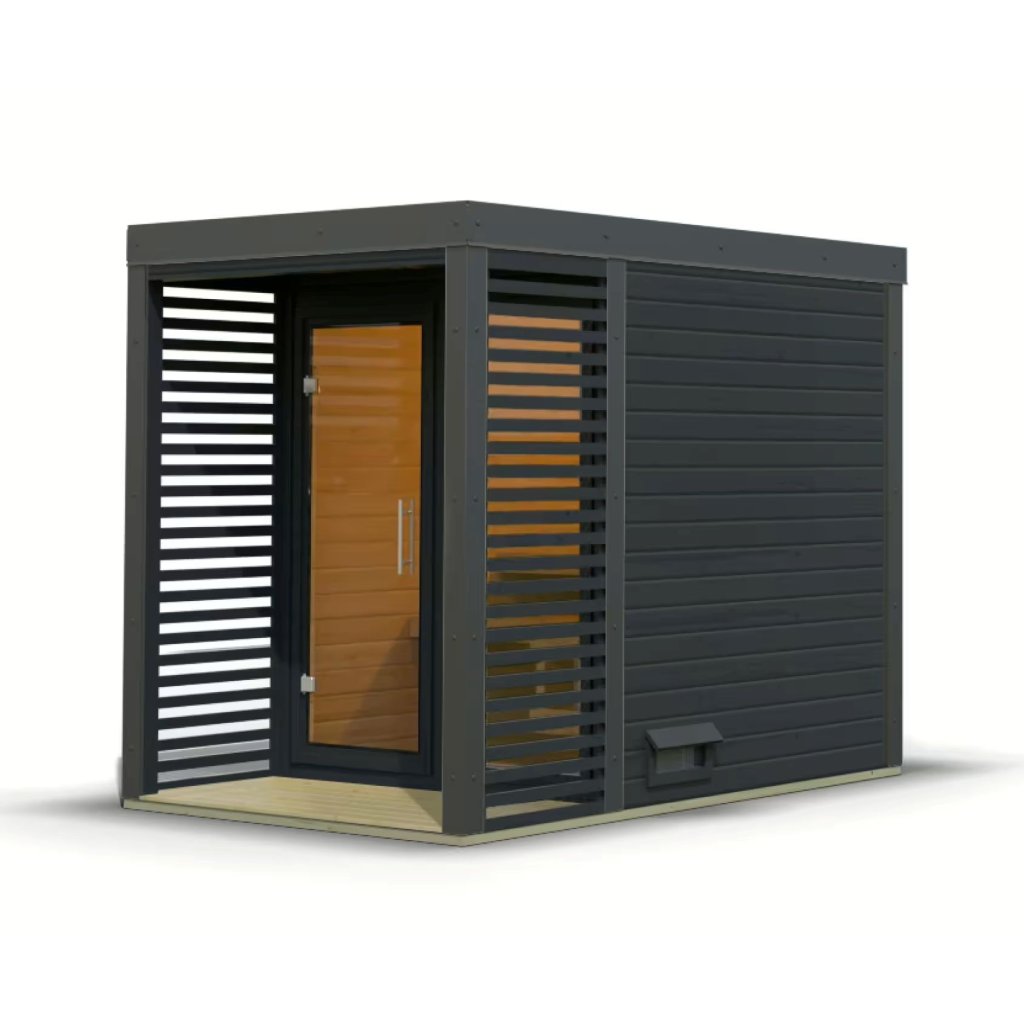Naše sauna ARES 1 kombinuje přírodní krásu severského smrku s moderními ocelovými prvky pro maximální ochranu. Stěny o tloušťce 38 mm, strop s izolací z minerální vlny a masivní dřevěná konstrukce zajišťují vynikající tepelnou izolaci. Vnější rozměry š 191 x h 276 cm a dvě pohodlné lavice nabízí dostatek prostoru pro relaxaci. Kvalitní plochá střecha chrání konstrukci i za nepříznivého počasí, zatímco impregnované podlahové trámy s dřevěnou podlahou chrání proti vlhkosti. Sauna je dostupná v různých barevných kombinacích, které si můžete přizpůsobit podle svého vkusu. Dodáváme jako stavebnici v rozloženém stavu, kde stěny tvoří jednotlivé dřevěné profily, které pouze sesadíte k sobě a sešroubujete. To garantuje jednoduchou montáž, kterou zvládne každý domácí kutil.
