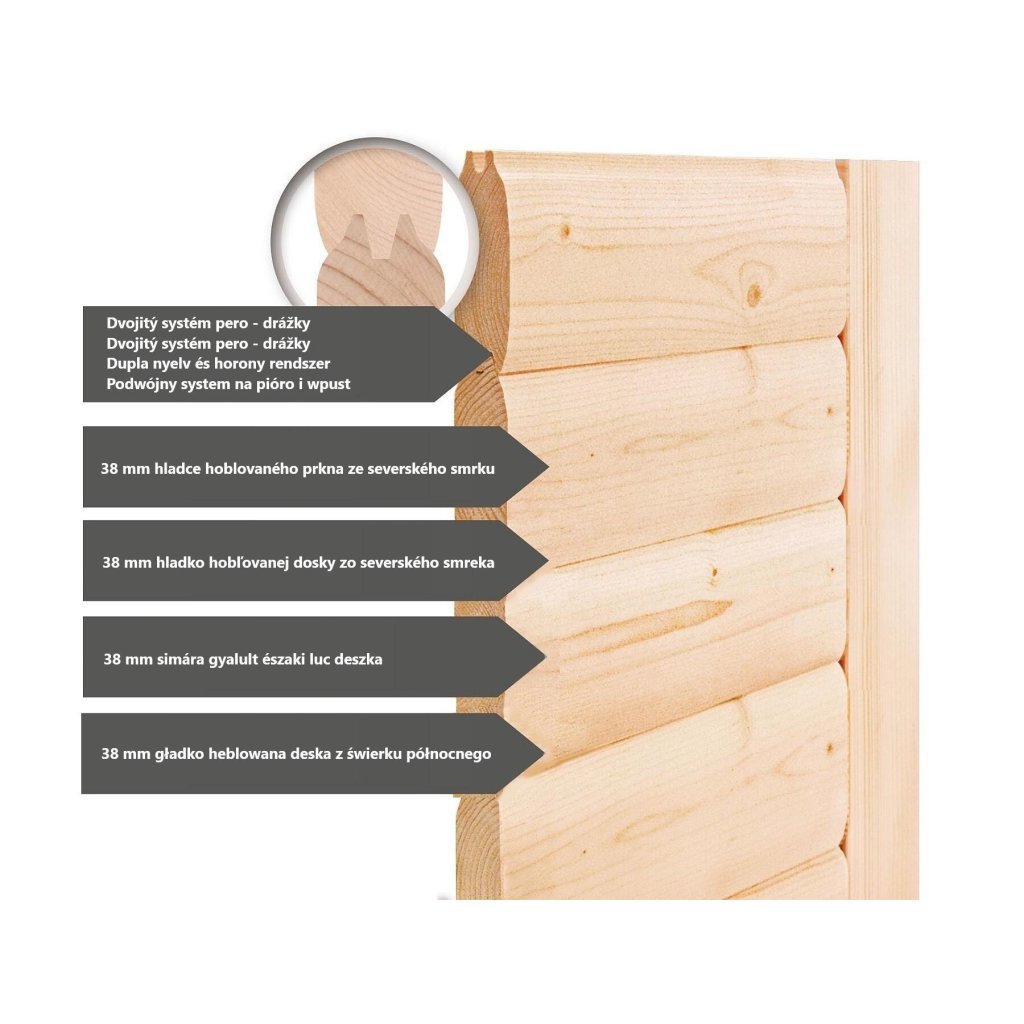 Venkovní model finské sauny pro vaši zahradu. Sauna je určená pro 2 sedící osoby. Její výrobce, firma KARIBU HOLZTECHNIK z německých Brém, dokázala svými výrobky úspěšně navázat na staletou tradici skandinávského saunování a současně do ní zapracovat dnešní moderní technologie. Dodáváme jako stavebnici v rozloženém stavu, kde stěny tvoří jednotlivé dřevěné profily, které pouze sesadíte k sobě a sešroubujete. To garantuje jednoduchou montáž, kterou zvládne každý domácí kutil. Stěny sauny jsou složeny ze speciálně hlazených prken s dvojitým perem a drážkou, což garantuje neobyčejnou pevnost spoje.