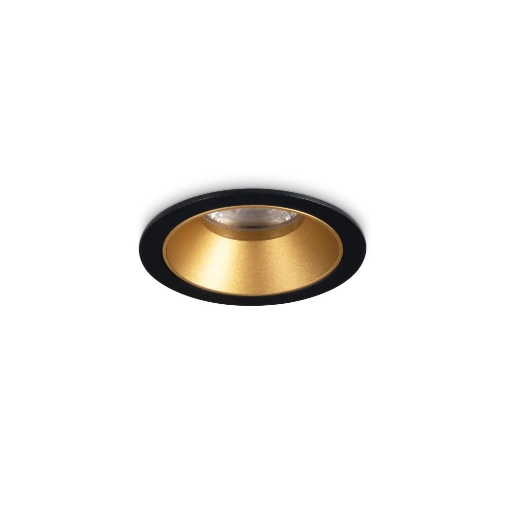 Kulaté vestavné LED svítidlo Ideal Lux GAME TRIM ROUND 349077 v černo-zlatém provedení s integrovanými LED diodami o příkonu 5,5 W s teplým bílým světlem 3000 K se světelným tokem 470 lm. Krytí IP20 pro interiérové použití.
