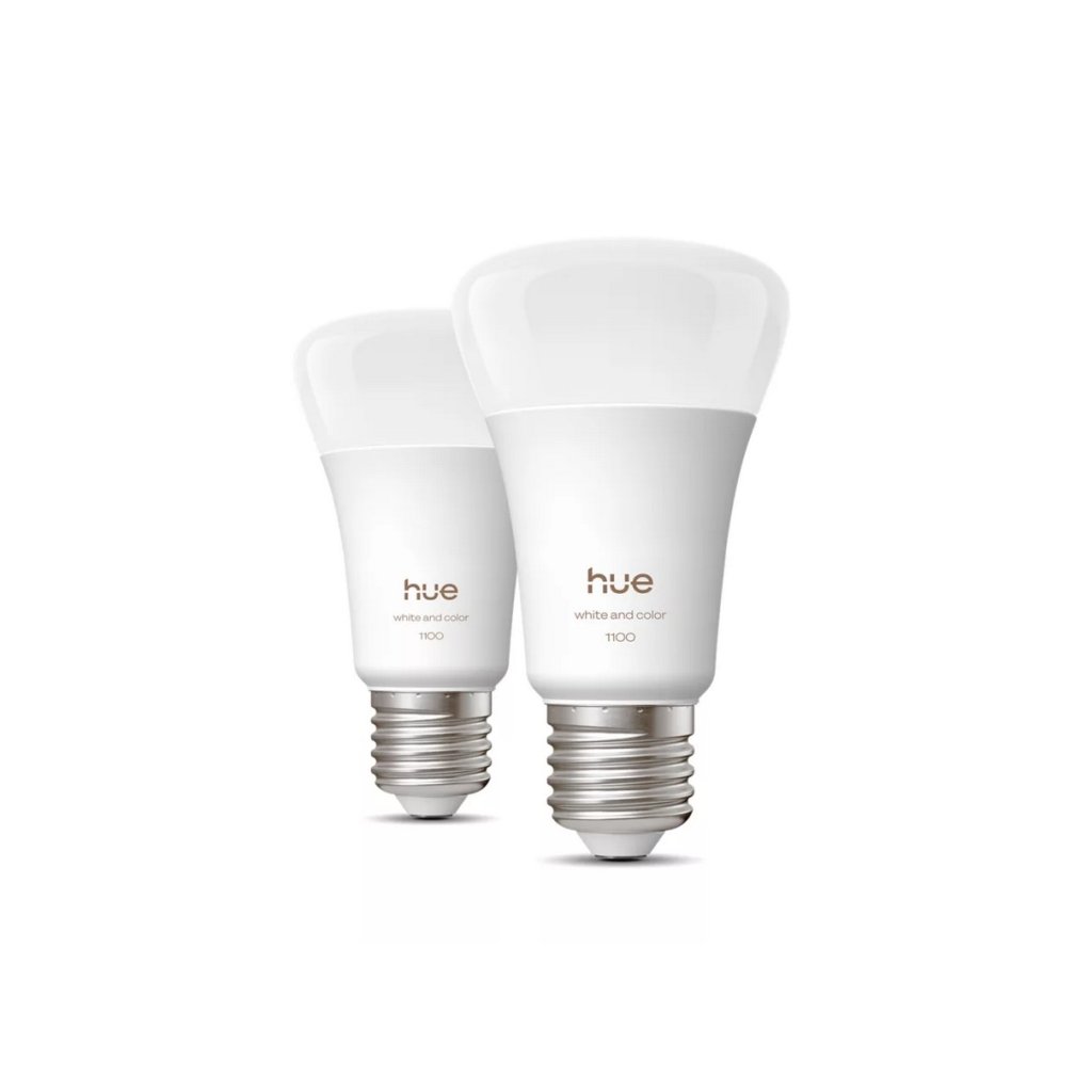 Set 2 ks smart LED žárovek Philips Hue WCA s paticí E27 o příkonu 2 x 8,1 W, které svítí stmívatelným bílým světlem v celé škále od 1000 K po 20000 K i barevný svit v až 16 miliónech odstínech se světelným tokem 1100 lm, které lze jednoduše připojit přes Hue Bridge, ovládat jejich svit přes Bluetooth, apikací či hlasem.