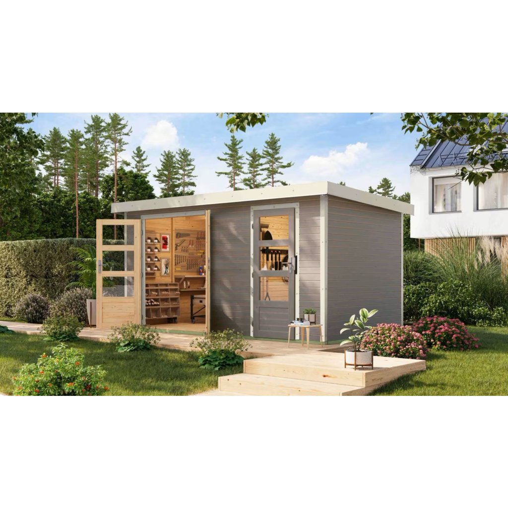 Hybridní domek KARIBU MERKUR (12498) světle šedý / bílý LG4455