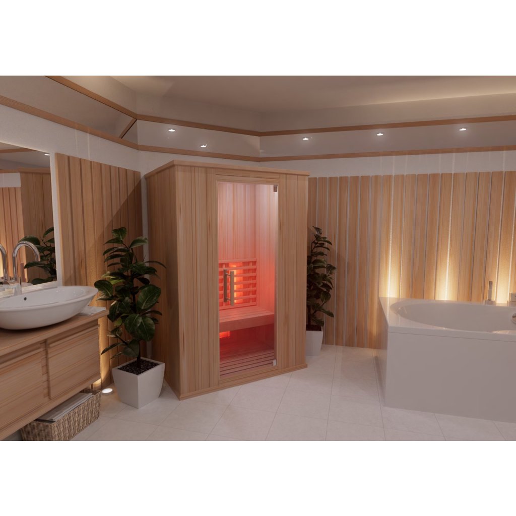 Infrasauna od německého výrobce RORO GmbH, typ GERLOS je určena pro 2 osoby a je ideální volbou pro ty, kteří hledají pohodlný a efektivní způsob, jak si užít saunování přímo u sebe doma. Díky svému modernímu a univerzálnímu designu se hodí do jakéhokoli prostoru – ať už v bytě nebo v rodinném domě. Sauna je vyrobena z kvalitního jedlovce (hemlock) dřeva, což jí zajišťuje nejen skvělý vzhled, ale i dlouhou životnost a odolnost. Tato infrasauna je navržena tak, aby byla snadno ovladatelná a vyžadovala minimální údržbu. S technologií, která zaručuje rovnoměrné rozložení tepla a možnost nastavení teploty, si užijete intenzivní prohřátí těla a podpoříte krevní oběh. Je skvělým řešením pro ty, kteří chtějí zlepšit svou fyzickou kondici a zároveň si dopřát chvíle pohody a relaxace. Pravidelný pobyt v infrasauně má pozitivní účinky na zdraví – pomáhá zmírnit bolest, zlepšuje flexibilitu kloubů, zvyšuje prokrvení a má protizánětlivý účinek. Navíc může zlepšit vaši psychickou pohodu, snížit svalové napětí a podpořit kardiovaskulární systém. Infrasauna je skvělé řešení i pro ty, kdo nemohou využívat klasickou saunu kvůli zdravotním problémům. Díky jednoduchému ovládání a efektivnímu využití prostoru je infrasauna RORO GERLOS skvělou volbou pro každého, kdo chce snadno a pohodlně využívat výhody saunování bez složitých příprav.