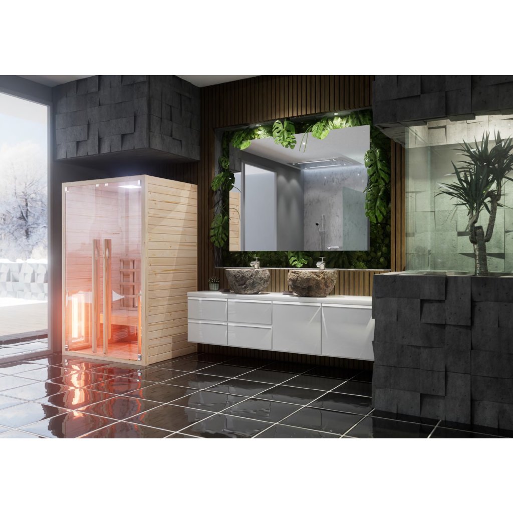 Infrasauna od německého výrobce RORO GmbH, typ HOCHTOR je určena pro 2 osoby a je ideální volbou pro ty, kteří hledají pohodlný a efektivní způsob, jak si užít saunování přímo u sebe doma. Díky svému modernímu a univerzálnímu designu se hodí do jakéhokoli prostoru – ať už v bytě nebo v rodinném domě. Sauna je vyrobena z kvalitního smrkového dřeva, což jí zajišťuje nejen skvělý vzhled, ale i dlouhou životnost a odolnost. Tato infrasauna je navržena tak, aby byla snadno ovladatelná a vyžadovala minimální údržbu. S technologií, která zaručuje rovnoměrné rozložení tepla a možnost nastavení teploty, si užijete intenzivní prohřátí těla a podpoříte krevní oběh. Je skvělým řešením pro ty, kteří chtějí zlepšit svou fyzickou kondici a zároveň si dopřát chvíle pohody a relaxace. Pravidelný pobyt v infrasauně má pozitivní účinky na zdraví – pomáhá zmírnit bolest, zlepšuje flexibilitu kloubů, zvyšuje prokrvení a má protizánětlivý účinek. Navíc může zlepšit vaši psychickou pohodu, snížit svalové napětí a podpořit kardiovaskulární systém. Infrasauna je skvělé řešení i pro ty, kdo nemohou využívat klasickou saunu kvůli zdravotním problémům. Díky jednoduchému ovládání a efektivnímu využití prostoru je infrasauna RORO HOCHTOR skvělou volbou pro každého, kdo chce snadno a pohodlně využívat výhody saunování bez složitých příprav.