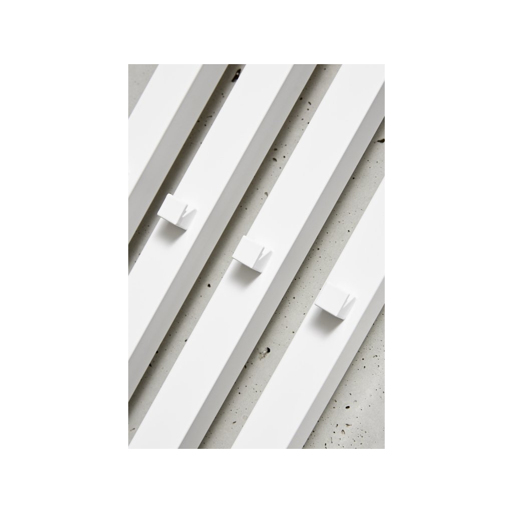 Úzký radiátor s hranatými profily trubek patří mezi nejužší radiátory na trhu. Je doplněn o hranaté háčky ve dvou řadách pro snadné zavěšení ručníků.
