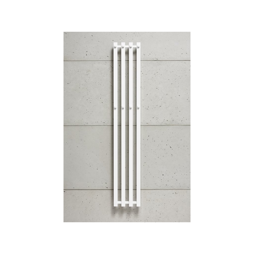 Úzký radiátor s hranatými profily trubek patří mezi nejužší radiátory na trhu. Je doplněn o hranaté háčky ve dvou řadách pro snadné zavěšení ručníků.