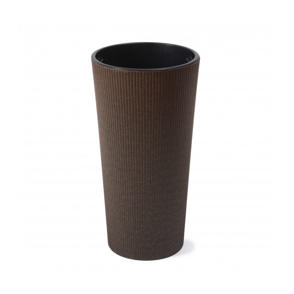 Moderní plastový květináč Lilia Eco coffe jumper proužek se strukturovaným dizajnem a kónickým tvarem, který působí velmi luxusně.