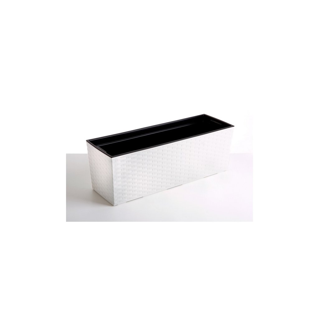 Moderní plastový truhlík BEGONIA RATAN se skládá ze dvou kusů, plastový obal a vyjímatelná vložka se kterou se dá jednoduše manipulovat pomocí úchytů na bocích.