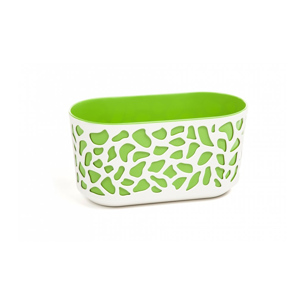 Truhlík (vklad) má světle zelenou barvu, obal (děrovaný truhlík) je ve světle krémové barvě (krémovo/bílá).