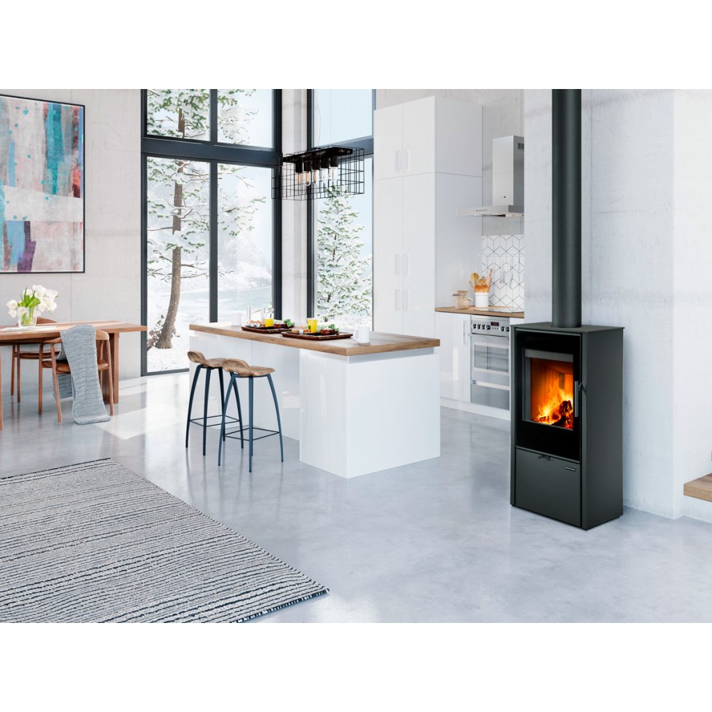 Krbová kamna jsou vhodná pro nízkoenergetické domy. Dvířka kamen mají designově potištěné velkoplošné prosklení. Disponují systémem CPV – centrální přívod externího vzduchu. Ve standardu je možné zapojení horního nebo zadního odvodu spalin. Díky sekundárnímu přívodu vzduchu je sklo dvířek omýváno, a tak nedochází k usazování nečistot. Spalovací komora je vyložena šamotovými tvarovkami. Regulaci primárního a sekundárního přívodu vzduchu lze řídit jediným ovládacím prvkem. Ve spodní části kamen je uzavíratelný dřevník, který umožnuje uskladnění menší zásoby dřeva nebo krbového nářadí. Design umocňují celoskleněná dvířka kamen.