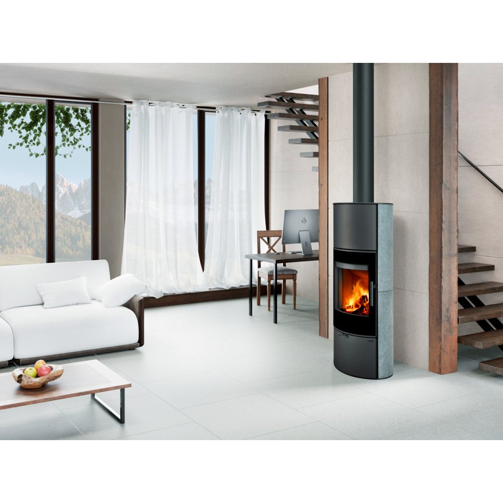 Jsou vhodná pro nízkoenergetické domy. Dvířka kamen mají designově potištěné velkoplošné prosklení. Disponují systémem CPV – centrální přívod externího vzduchu. Ve standardu je možné zapojení horního nebo zadního odvodu spalin. Díky sekundárnímu přívodu vzduchu je sklo dvířek omýváno, a tak nedochází k usazování nečistot. Spalovací komora je vyložena šamotovými tvarovkami. Regulaci primárního a sekundárního přívodu vzduchu lze řídit jediným ovládacím prvkem. Ve spodní části kamen je uzavíratelný dřevník, který umožnuje uskladnění menší zásoby dřeva nebo krbového nářadí. Do kamen lze dokoupit akumulační prvky, které sálají teplo až 5,5 h. Design umocňují ovládací prvky a celoskleněná dvířka kamen.