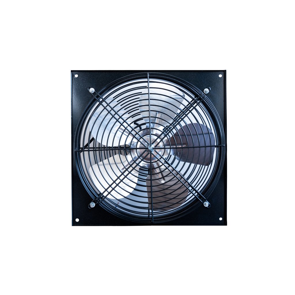 Kovový ventilátor větrá uzavřené prostory a eliminuje různé znečišťující látky. Směr vzduchu je výfuk. B - foukání. Vzduch prochází ochrannou sítí skrze vrtuli a vychází přes motor. Používá se v sacích a tlačných systémech.