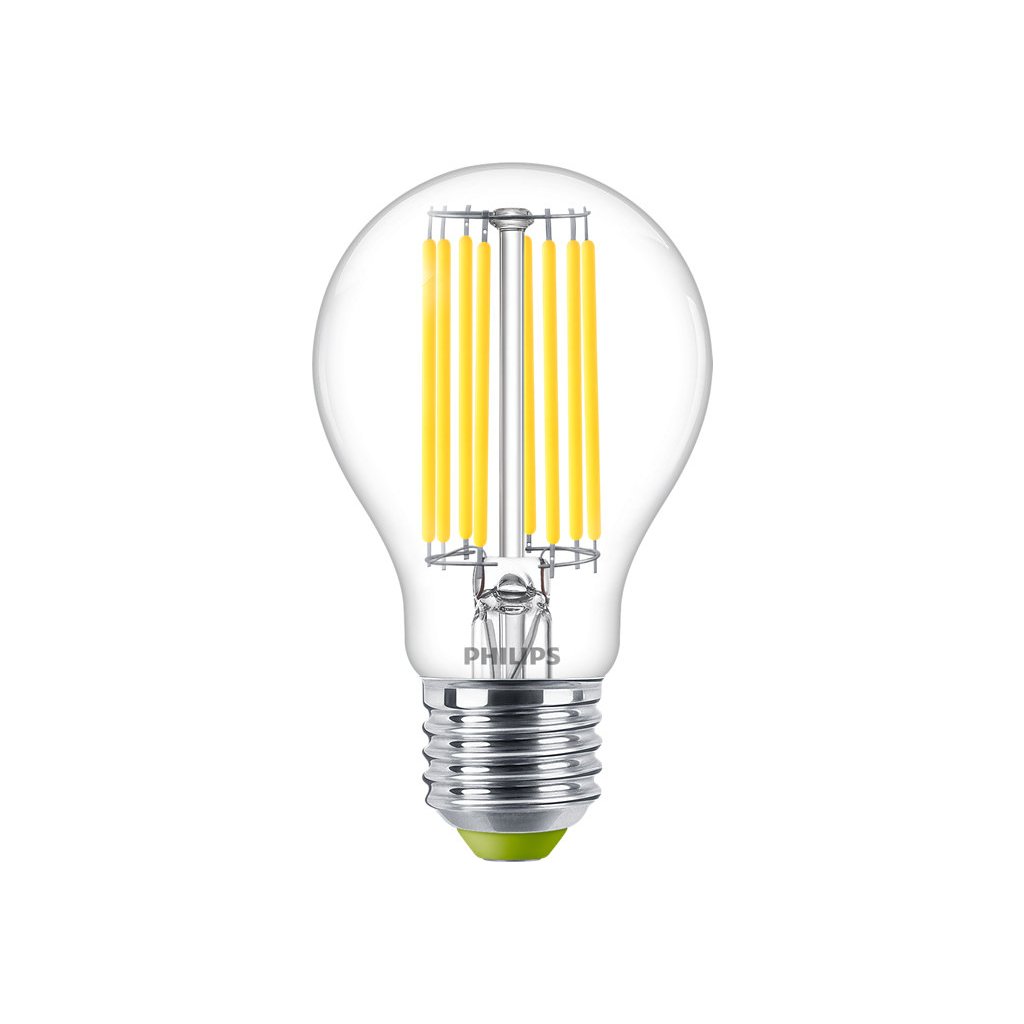 LED žárovka Philips Master LEDbulb UltraEfficient s vysokou účinností 210 lm/W s paticí E27 v tradičním tvaru čiré skleněné baňky A60 s viditelnými filament vlákny. Má příkon 4 W a je náhradou obyčejné 60 W žárovky. Svítí neutrálním bílým světlem 4000 K.
