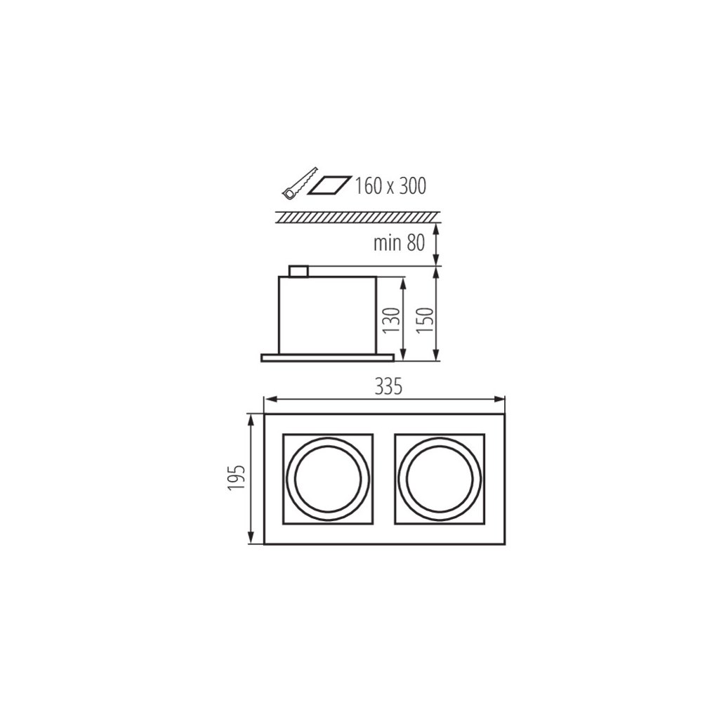 Stropní zápustné svítidlo typu downlight Kanlux MATEO ES DLP-250-W 32933 GU10 pro žárovky typu ES111 max. 2x25W bez zdroje IP20 19,5x33,5cm hranaté, bílé