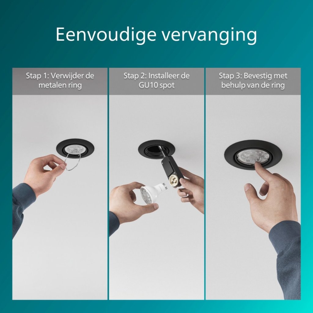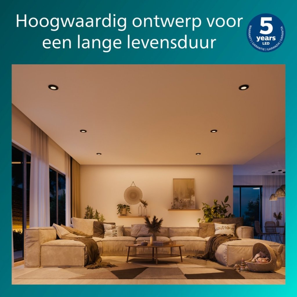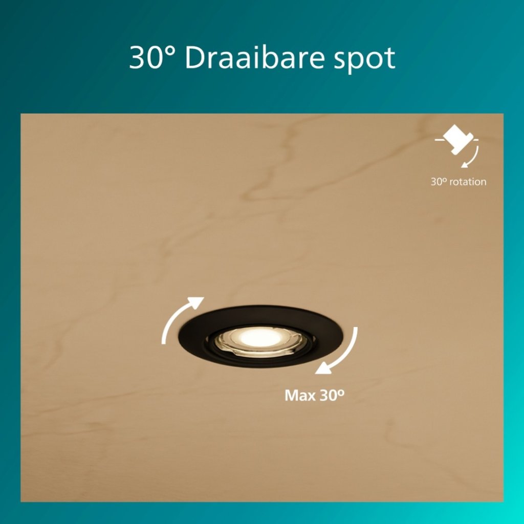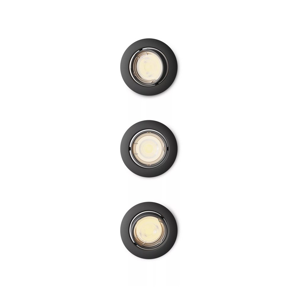Sada 3 ks vestavných bodových svítidel Philips Peridot v černém provedení s paticí GU10 pro LED žárovku o max. příkonu 3 x 7 W (žárovka není součástí balení) s možným směrováním svitu v úhlu 30°. Interiérové krytí IP20.