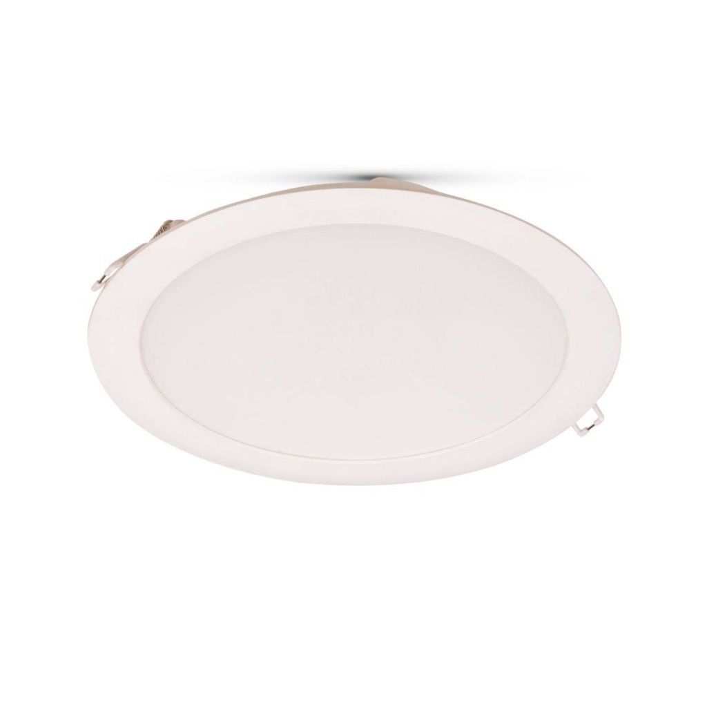 Zápustné LED svítidlo PILA DN020B G3 typu downlight o průměru 165 mm s integrovanými úspornými LED diodami o celkovém příkonu 14 W, které vydávají jasné denní neutrální bílé světlo 4000 K se světelným tokem 1300 lm.