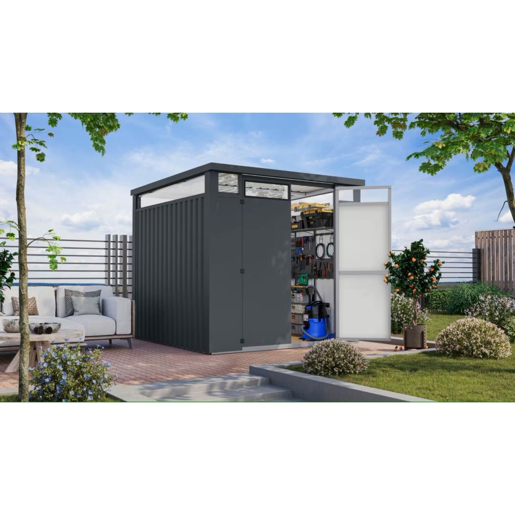 Objevte dokonalost ve své zahradě s našimi kovovými zahradními domky OSTEN, které jsou vyrobeny z práškově lakovaného trapézového plechu a vybaveny robustním rámem z pozinkovaných čtvercových ocelových trubek. Tyto vysoce kvalitní domky spojují prvotřídní funkčnost a nadčasový design, čímž vylepší váš venkovní prostor a zároveň poskytují cenný úložný prostor.