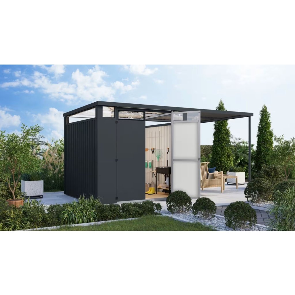 Objevte dokonalost ve své zahradě s našimi kovovými zahradními domky OSTEN, které jsou vyrobeny z práškově lakovaného trapézového plechu a vybaveny robustním rámem z pozinkovaných čtvercových ocelových trubek. Tyto vysoce kvalitní domky spojují prvotřídní funkčnost a nadčasový design, čímž vylepší váš venkovní prostor a zároveň poskytují cenný úložný prostor.