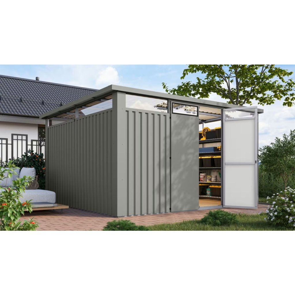 Objevte dokonalost ve své zahradě s našimi kovovými zahradními domky OSTEN, které jsou vyrobeny z práškově lakovaného trapézového plechu a vybaveny robustním rámem z pozinkovaných čtvercových ocelových trubek. Tyto vysoce kvalitní domky spojují prvotřídní funkčnost a nadčasový design, čímž vylepší váš venkovní prostor a zároveň poskytují cenný úložný prostor.