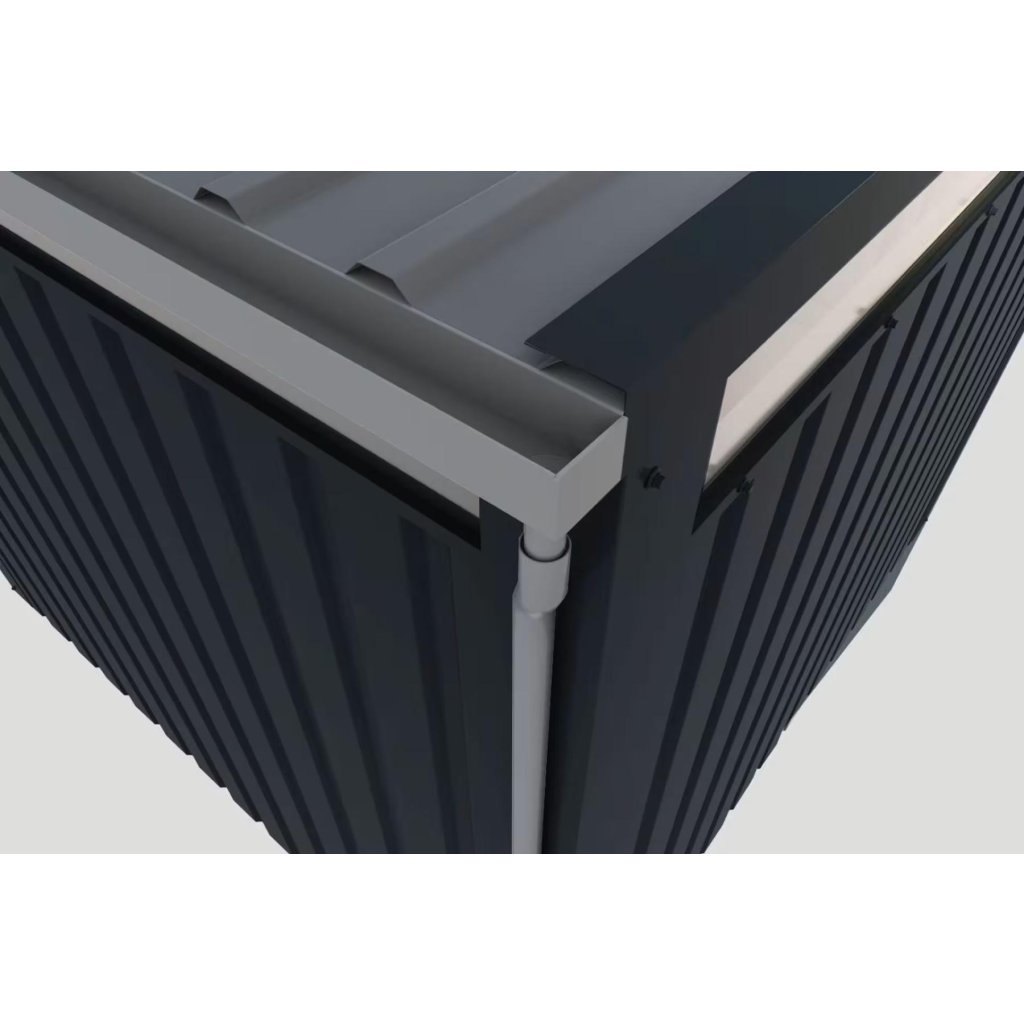 Trapézový plech je pečlivě práškově lakován, což nejen dodává estetický vzhled, ale také zajišťuje vynikající odolnost vůči nepříznivým povětrnostním vlivům. Rám z pozinkovaných čtvercových ocelových trubek zaručuje stabilitu a pevnost konstrukce. Světelný pás z umělého skla umožňuje pronikání přirozeného světla do interiéru, čímž vytváří příjemnou, světlou a pohodovou atmosféru uvnitř domku. Součástí dodávky je kvalitní okap, který efektivně odvádí dešťovou vodu.