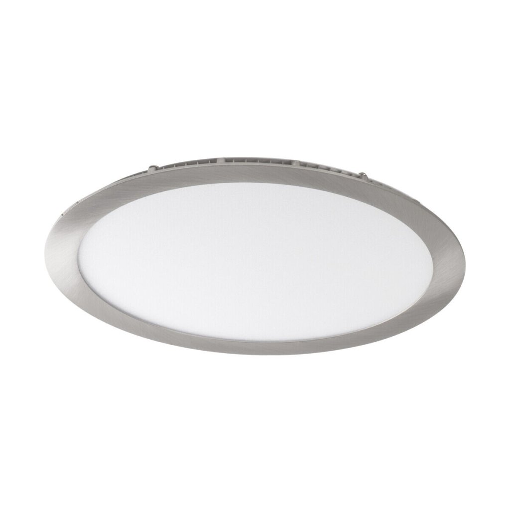 Zápustný LED downlight Kanlux ROUNDA V2LED v barvě saténového niklu o průměru 296 mm s integrovaným LED zdrojem o celkovém příkonu 24 W s jasným neutrálním denním bílým světlem 4000 K.