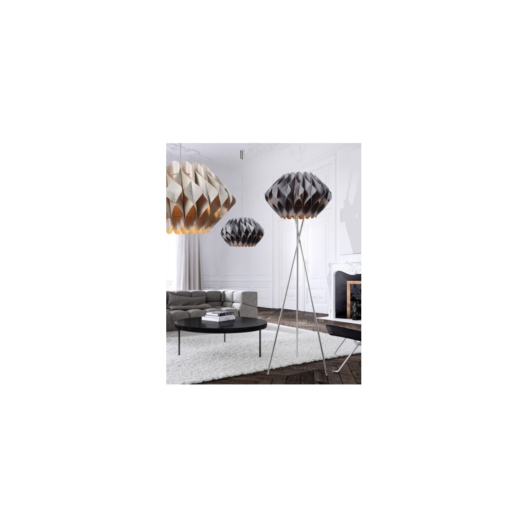 Elegantní lustr Ruben M v menším šedém provedení o průměru 45 cm s nastavitelnou délkou zavěšení až 140 cm je osazeno paticí E27 pro žárovku o maximálním příkonu 1 x 60 W, která není dodávaná v balení.