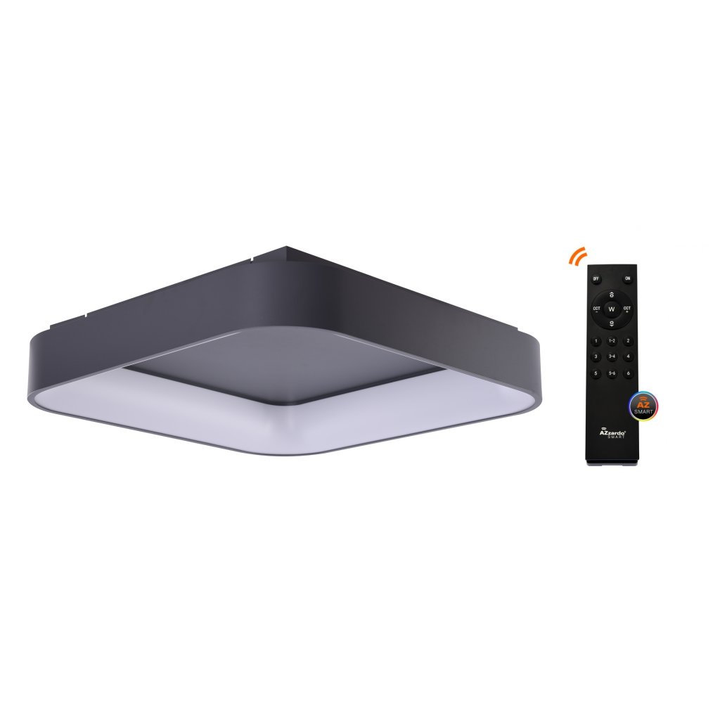 Stropní smart LED svítidlo Solvent S top v jednoduchém módním stylu v nejmenším hranatém provedení o velikosti 45 x 45 cm z kolekce chytrého domácího osvětlení AZzardo Smart svítí stmívatelným úsporným bílým světlem v rozsahu 3000 K – 6000 K.