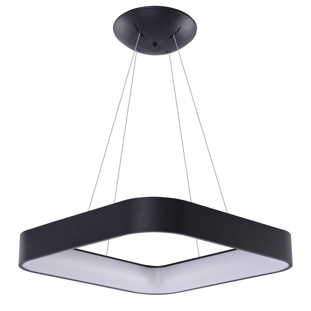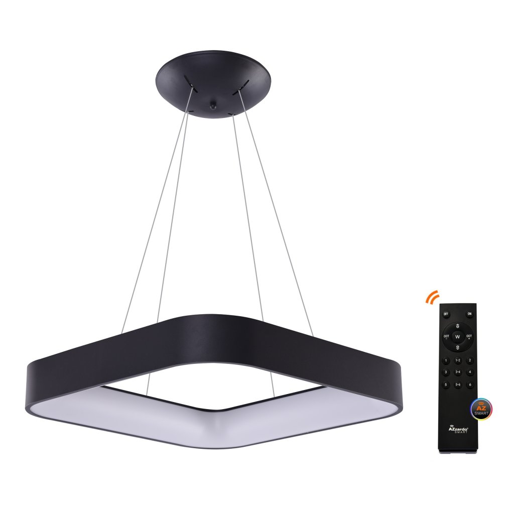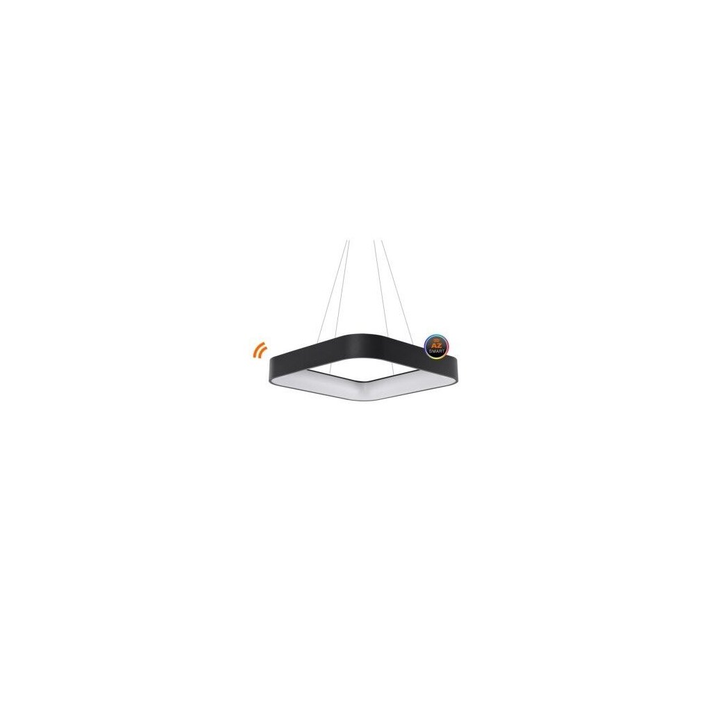 Smart závěsné LED svítidlo Solvent S v černé hranaté variantě o velikosti 80 cm x 80 cm z kolekce chytrého domácího osvětlení AZzardo Smart se stmívatelným úsporným bílým světlem v rozsahu 3000 K – 6000 K, které lze ovládat aplikací ve vašem smartphonu.