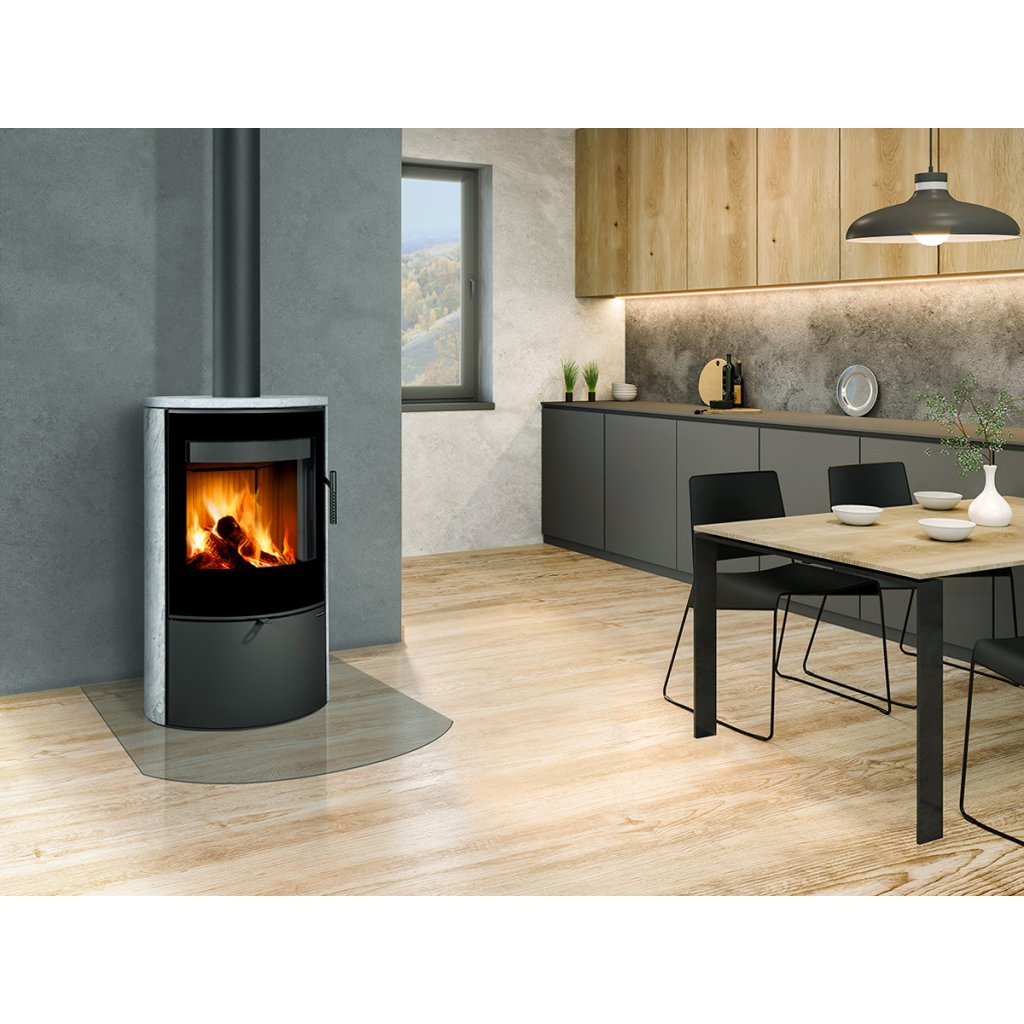 Zaoblený tvar krbových kamen SONE G společně s designovým sklem poskytují příjemný pohled na oheň, který nikdy nezevšední.