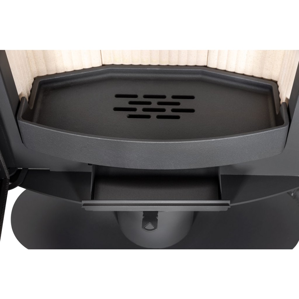 Díky možnosti vkládání dřeva do délky až 50 cm a vybavení tříbodovým zajišťovacím mechanismem dvířek nabízí tato kamna snadnou obsluhu a zvýšenou bezpečnost. Výběr obkladů z kamene serpentin, keramických kachlů nebo plechu s černou povrchovou úpravou umožňuje dokonale sladit kamna s interiérem vašeho domova, zatímco zaoblené tvary kamen dodávají celkovému designu jemnost a eleganci.