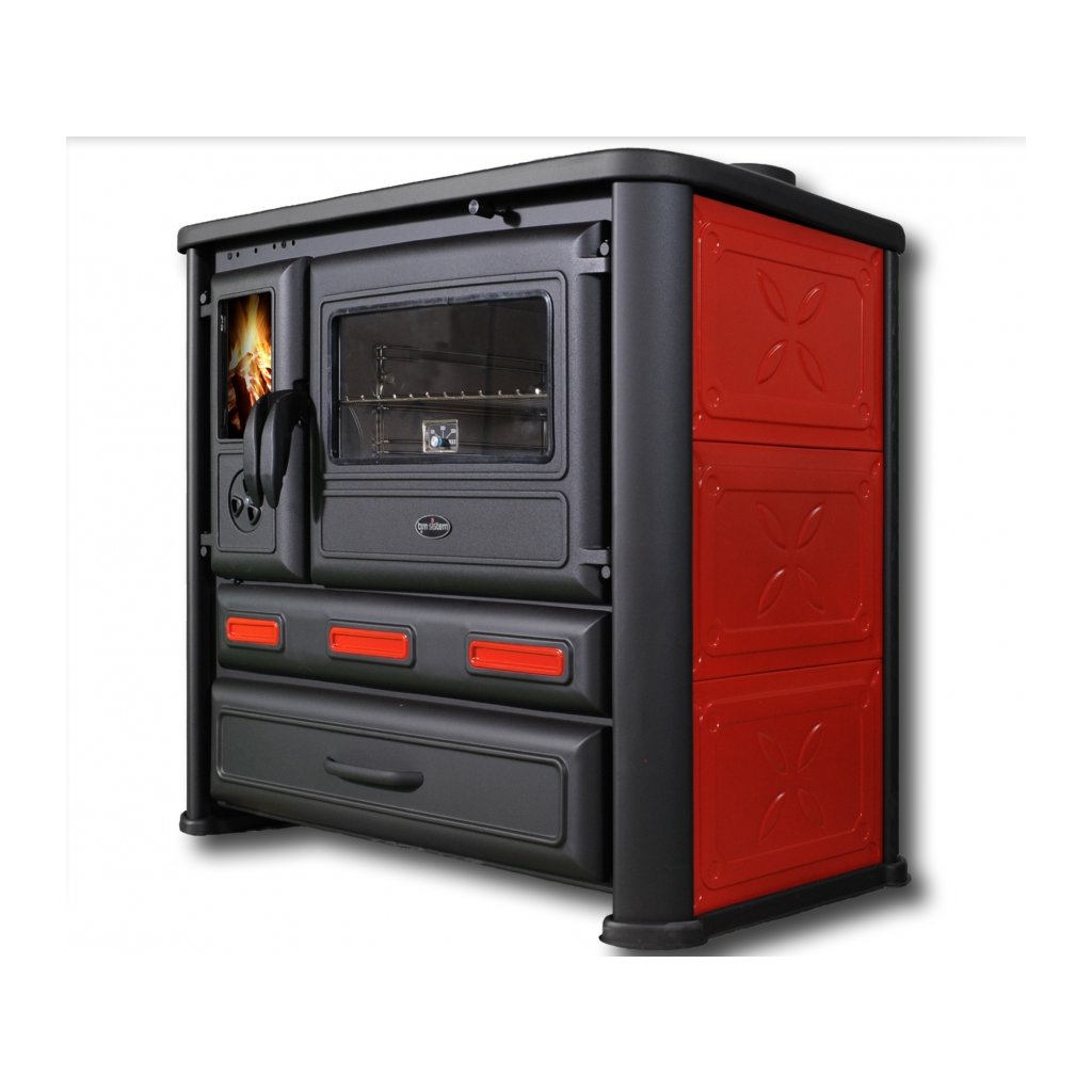 TIM SISTEM, sporák na TP ALMA MONS ECO 6 kW, pravý, červený_MÍRNĚ_POŠKOZENÝ (č.27)
