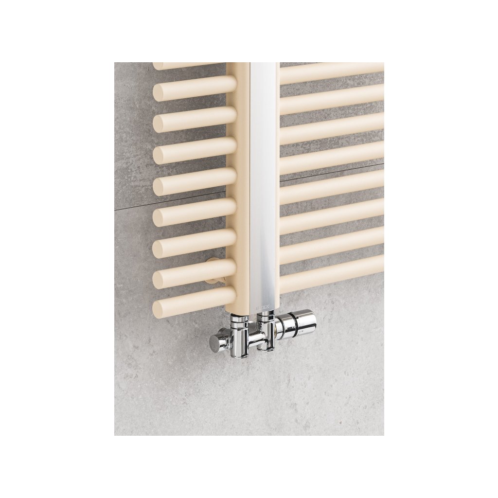 Ventil Twin-Combi je určen k napojení koupelnových radiátorů s vývodem tzv. na střed radiátoru a roztečí 50 mm, pro centrální i kombinované vytápění. Vyjímečné řešení ventilu umožňuje možnost instalovat el. tyč přímo do ventilu, což je důležité při kombinovaném vytápění u radiátoru Kronos.