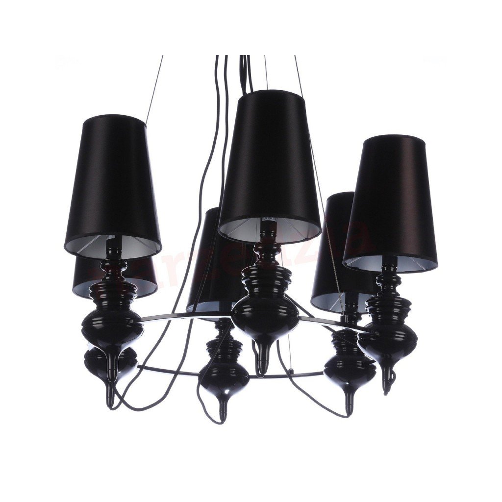 Závěsné svítidlo Baroco 6 z kolekce art-deco osvětlení značky Azzardo zaujme svým celočerným provedením v kombinaci s textilními difuzory a precizně zdobeným tělem. Hodí se pro osvícení kuchyní či jídelen. Je velmi oblíbeným doplňkem do kaváren a restaurací v retro stylu. Kvůli nižšímu krytí IP20 není vhodné do místností s výskytem vyšší vlhkosti vzduchu. Kulatá základna a tělo svítidla jsou vyrobeny z kvalitního kovu. Zvonovité difuzory jsou zhotoveny z textílie a osazeny paticí E27 o maximálním příkonu 6 x 50 W (zdroje nejsou součástí balení). Celkové rozměry svítidla jsou 140 x 80 x 80 cm. Délku závěsů lze nastavit. Svítidlo je napájeno ze sítě na 230 V. Vztahuje se na něj záruka 3 roky.